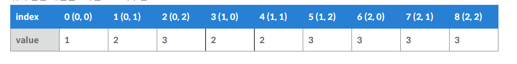 만들어진 배열을 1차원으로 바꾼 후, 이 때의 규칙을 살펴보면