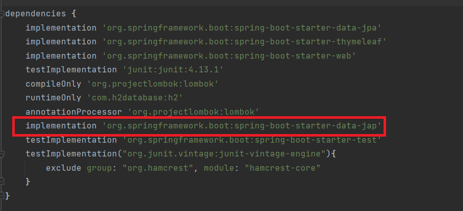 implementation 'org.springframework.boot:spring-boot-starter-data-jap'