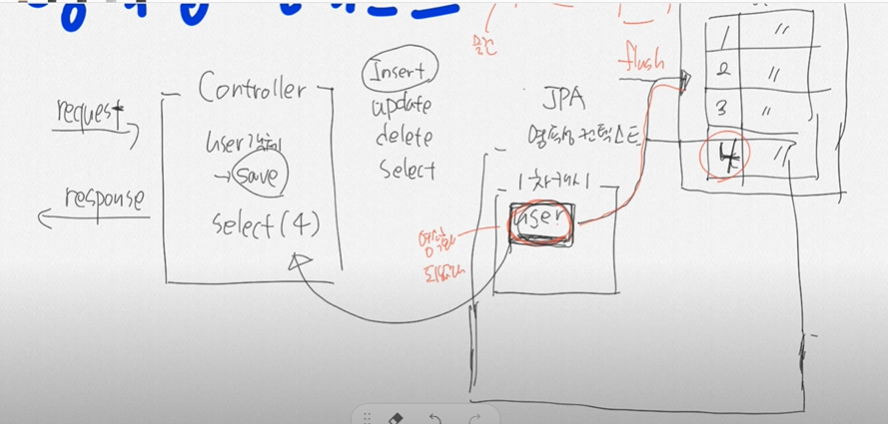 Controller에서 user객체 만들어서 save하면 영속성컨텍스트 안에 1차캐시 안에 쌓인다.