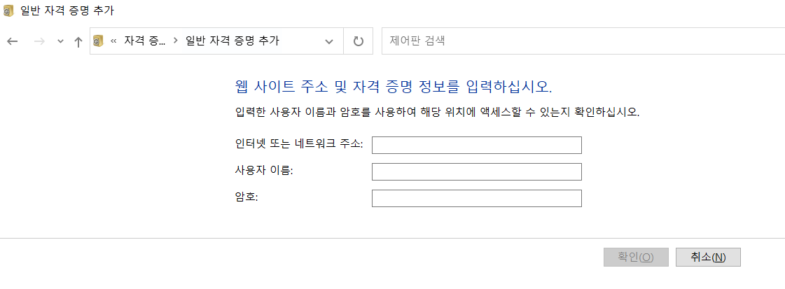 제어판 > 사용자 계정 > 자격 증명 관리자 에 들어가서